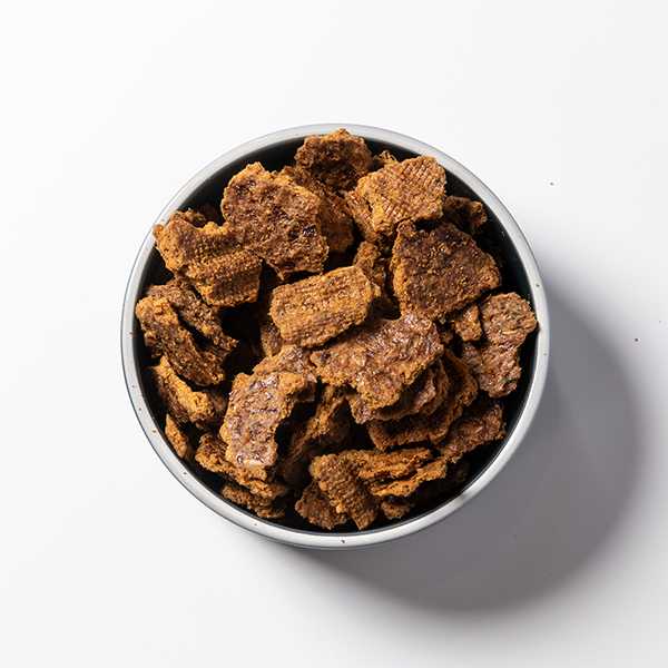 Friandise au bœuf limousine ou charolaise 83.33 % avec du chanvre 16.67 %.